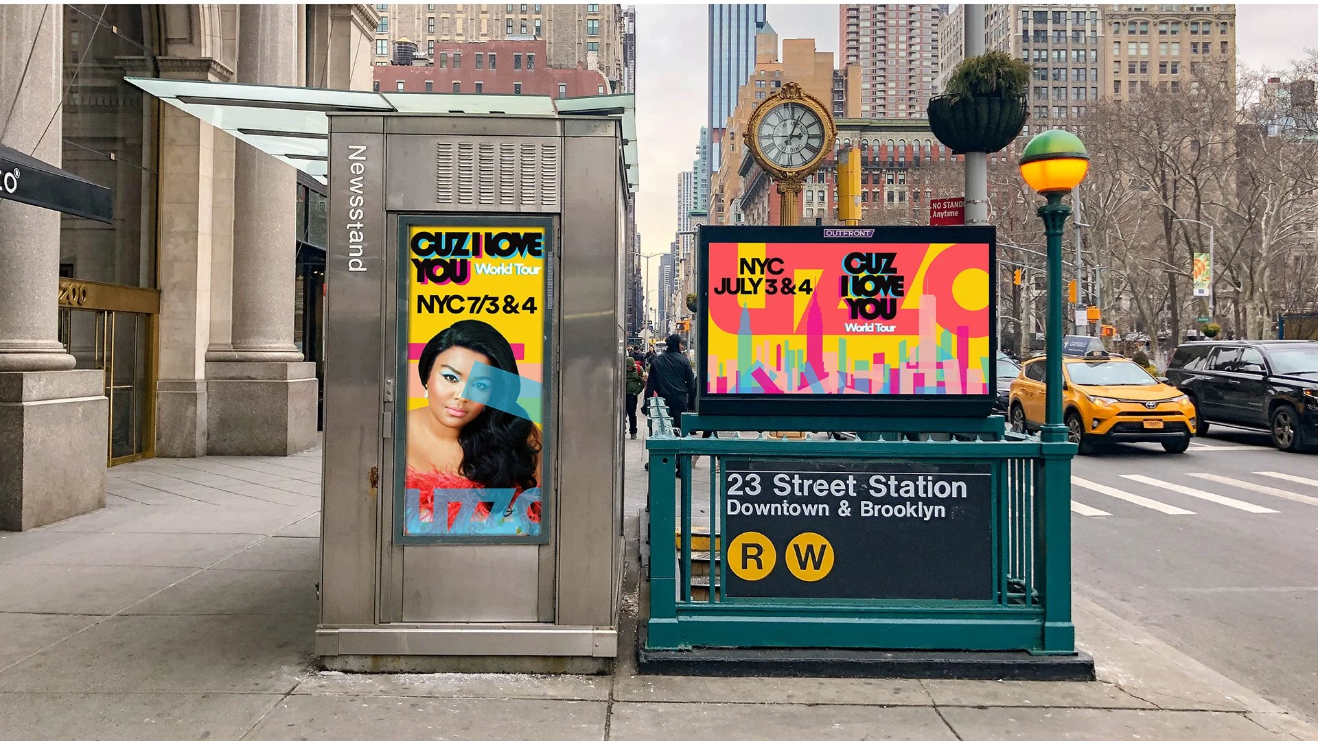 is a redesign of Lizzo's award winning album of the same name. I wanted the album to represent Lizzo's glow of positivity by using bright colors and dynamic shapes. I also design applications for a world tour and advertising in New York and London to promote it.